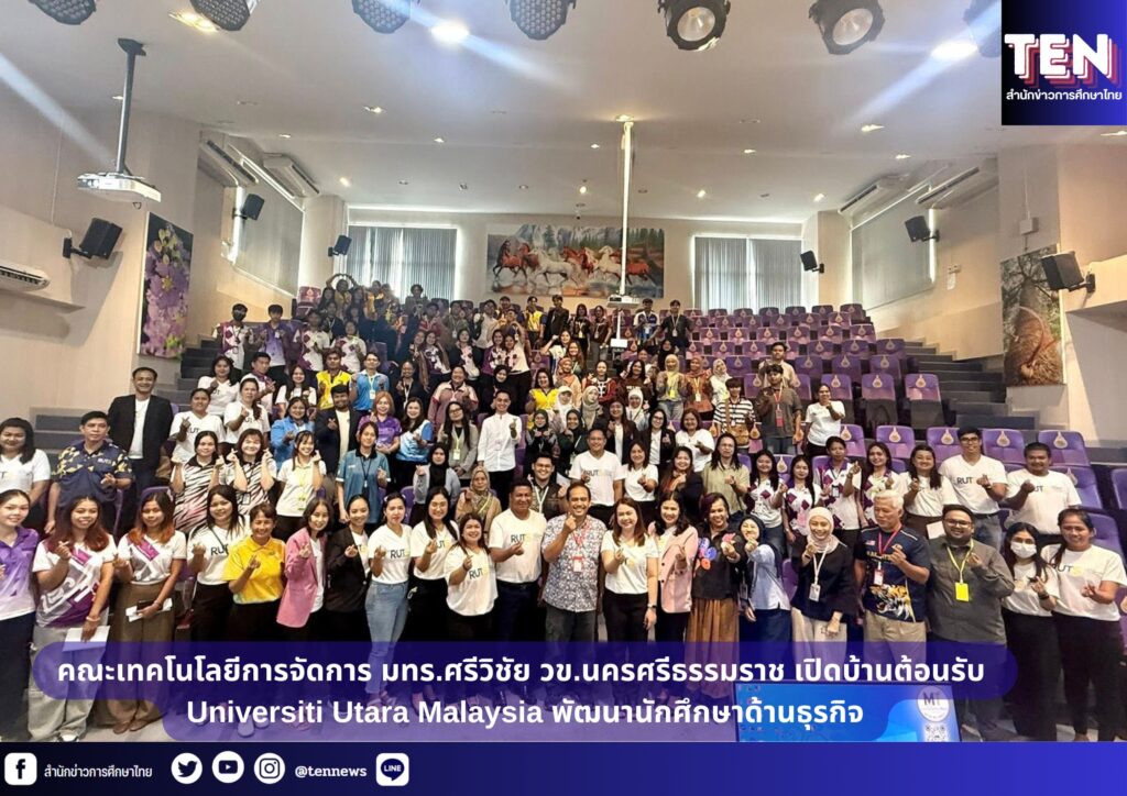 คณะเทคโนโลยีการจัดการ มหาวิทยาลัยเทคโนโลยีราชมงคลศรีวิชัย วิทยาเขตนครศรีธรรมราช พื้นที่ไสใหญ่ ภายใต้การนำของ ผู้ช่วยศาสตราจารย์ ดร.กรกนก โภคสวัสดิ์ คณบดีคณะเทคโนโลยีการจัดการ และ คณะผู้บริหาร อาจารย์ นักศึกษา บุคลากร ร่วมให้การต้อนรับ คณะอาจารย์ และ นักศึกษา จาก Universiti Utara Malaysia ในโอกาสเข้าร่วมโครงการ RUTS and UUM International Digital Marketing and Business Camp 2025 ซึ่งกำหนดจัดขึ้นระหว่างวันที่ 21 – 25 เมษายน 2568 โดยมี คณาจารย์ นักศึกษาสาขาบริหารธุรกิจ มทร.ศรีวิชัย นครศรีธรรมราช, มทร.ศรีวิชัย สงขลา, มทร.ศรีวิชัย วข.ตรัง, มทร.ศรีวิชัย พื้นที่ขนอม นครศรีธรรมราช และ นักศึกษาจาก Universiti Utara Malaysia เข้าร่วมกว่า 100 คน ณ คณะเทคโนโลยีการจัดการ มหาวิทยาลัยเทคโนโลยีราชมงคลศรีวิชัย วิทยาเขตนครศรีธรรมราช พื้นที่ไสใหญ่ จังหวัดนครศรีธรรมราช