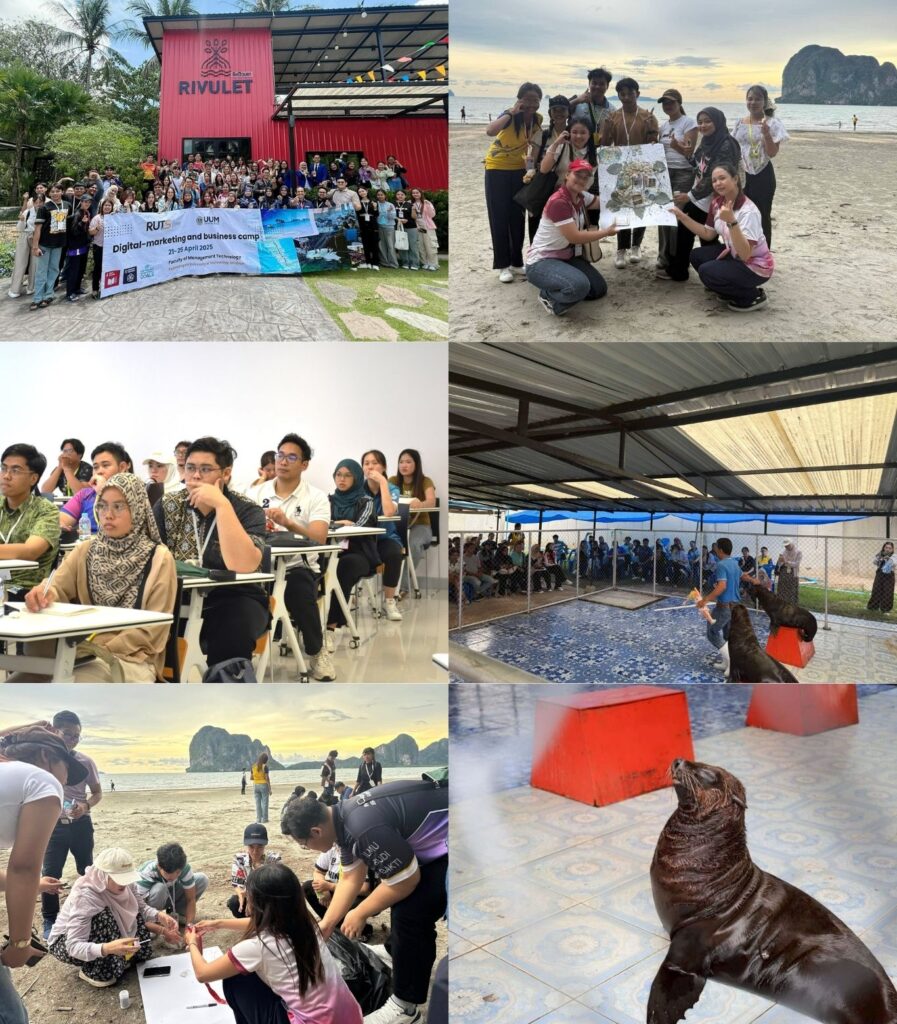 สำหรับ โครงการ RUTS and UUM International Digital Marketing and Business Camp 2025 เป็นความร่วมมือทางการศึกษาระหว่าง มหาวิทยาลัยเทคโนโลยีราชมงคลศรีวิชัย ร่วมกับ Universiti Utara Malaysia ประเทศมาเลเซีย และส่งเสริมความร่วมมือทางวิชาการระหว่างประเทศ อีกทั้ง เปิดโอกาสให้นักศึกษาได้พัฒนาทักษะด้านวิชาการ ควบคู่กับการแลกเปลี่ยนเรียนรู้วัฒนธรรมระหว่างประเทศ ภายในกิจกรรม นักศึกษาได้ร่วมกันเรียนรู้ วิเคราะห์ การทำงานร่วมกันเกี่ยวกับ Digital Business Model Canvas (DBMC), การประกวดแผนธุรกิจ (BMC), STP marketing, Model ธุรกิจร้านอาหาร อีกทั้ง ได้ลงพื้นที่ วิทยาลัยการโรงแรมและการท่องเที่ยว มหาวิทยาลัยเทคโนโลยีราชมงคลศรีวิชัย วิทยาเขตตรัง รับฟังการบรรยายการท่องเที่ยวเชิงนิเวศและรณรงค์การรักษาสิ่งแวดล้อม และเยี่ยมชมพิพิธภัณฑ์สัตว์น้ำราชมงคลตรัง การแสดงแมวน้ำโชว์ จะเห็นได้ว่าค่ายดังกล่าวมีการบูรณาการหลายๆศาสตร์การเรียนรู้เข้าด้วยกัน เพื่อให้นักศึกษาเกิดความรู้ ความเข้าใจ พร้อมนำไปปรับใช้ในการเรียนและชีวิตประจำวันต่อไป